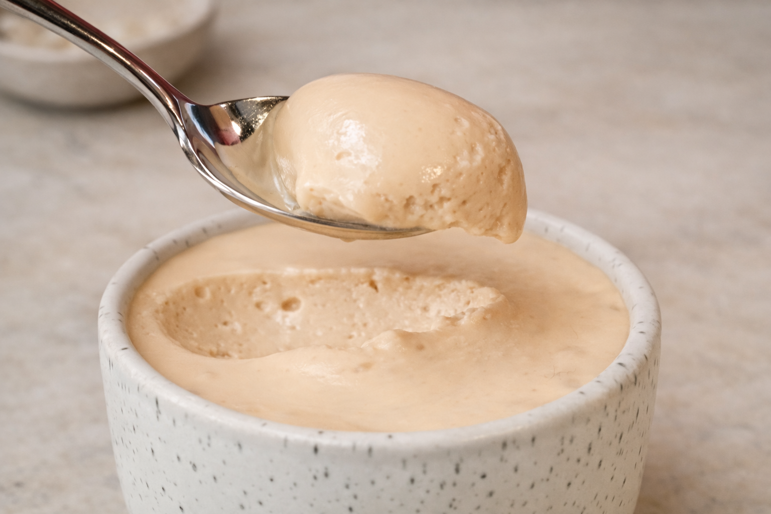 Option 1 – flüssige Creme: Die Masse einmal mit dem Schwingbesen aufschlagen und servieren.